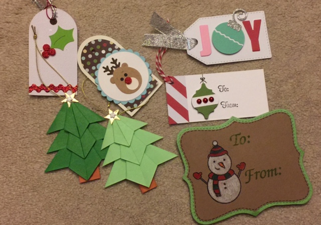 This Saturday we are having a Shoebox Christmas gift tag class, and its the Last Class of 2015! Here is a picture of some of the tags you will be making in class. You will go home with at least 10 tags.