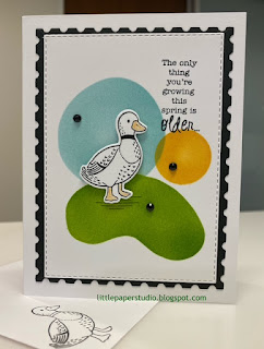 I thought I would pull out Stampin Up's Charming Duck Pond set with matching papers for this class. Love the color combination they used in this set: Balmy Blue, Granny Apple Green, Gray Granite, Peach Pie, Pretty Peacock and Pretty in Pink. In fact, the colors are what drew me in.